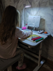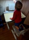 Вы можете регулировать угол наклона столешницы, чтобы ребенок мог комфортно заниматься письмом, чтением и рисованием. Таким образом за партой можно заниматься как сидя, так и стоя. Наклон также помогает ребенку всегда смотреть на тетрадь или книгу под правильным углом, чтобы он не сутулился, а также не вытягивал шею и его зрение не портилось.