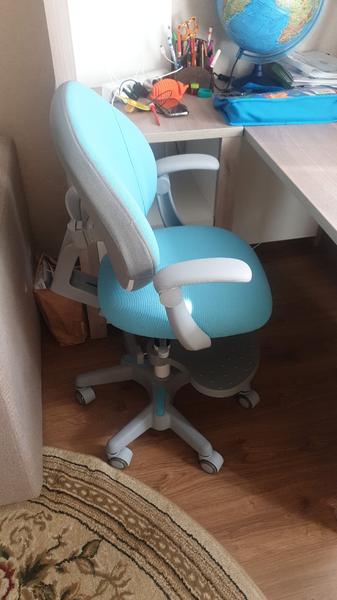 хорошее кресло, удобное)) Под стол высотой 75 см подлокотники заходят целиком, экономя место. Взяла дочке, скоро в первый класс пойдёт, теперь спокойна, что будет комфортно заниматься за столом, что спина и ноги на своих местах. Елена