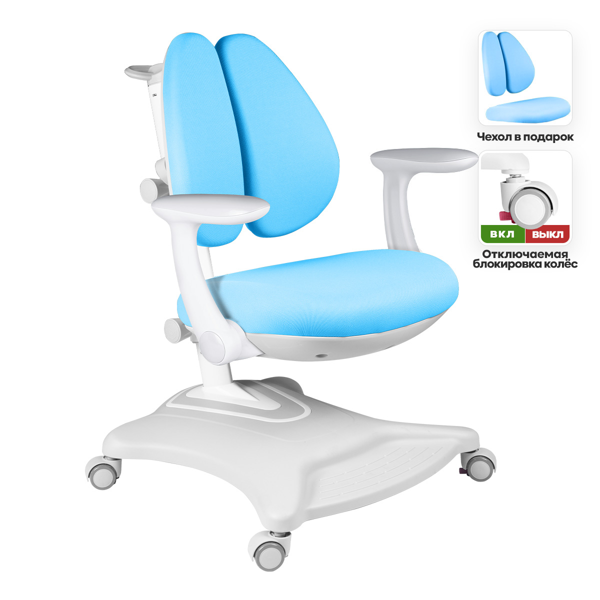 Дети не всегда сидят правильно, поэтому в кресле предусмотрен плавающий механизм. Когда ребенок отклоняется назад, "крылья" спинки создают давление на поясницу, тем самым возвращая спину ребенка в исходное положение.