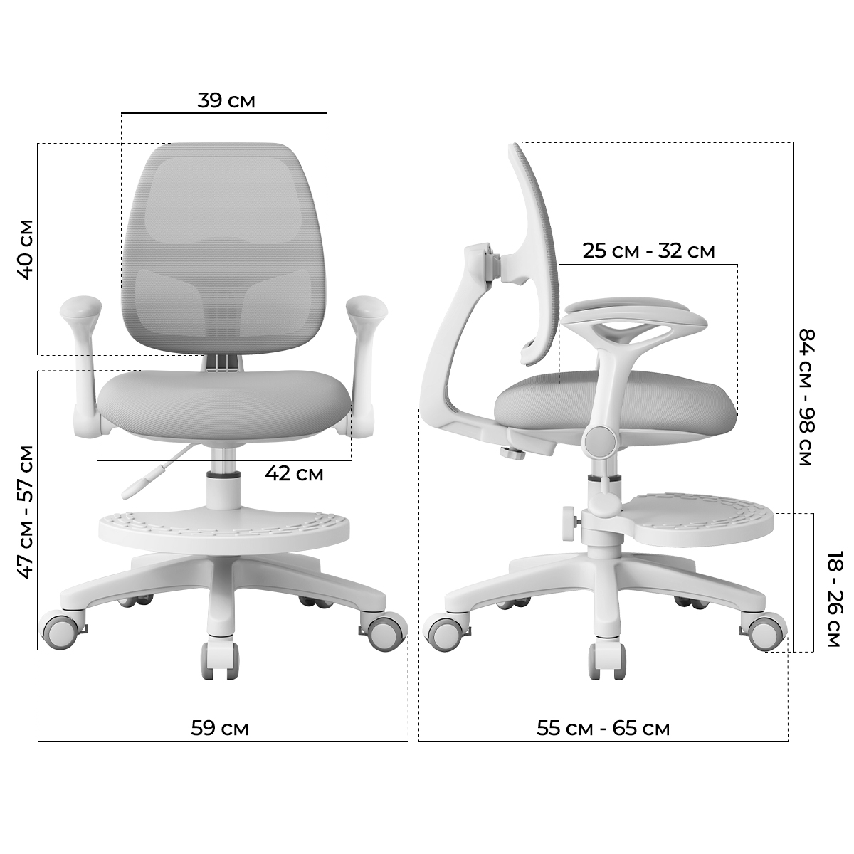 По рекомендациям ортопедов, стопы ребенка всегда должны находиться на твердой поверхности под прямым углом, именно поэтому в кресле Anatomica Primera предусмотрена регулируемая по высоте подставка для ног. Вместе с такой подставкой ребенок сможет заниматься в кресле как за растущей партой, так и за обычным столом.