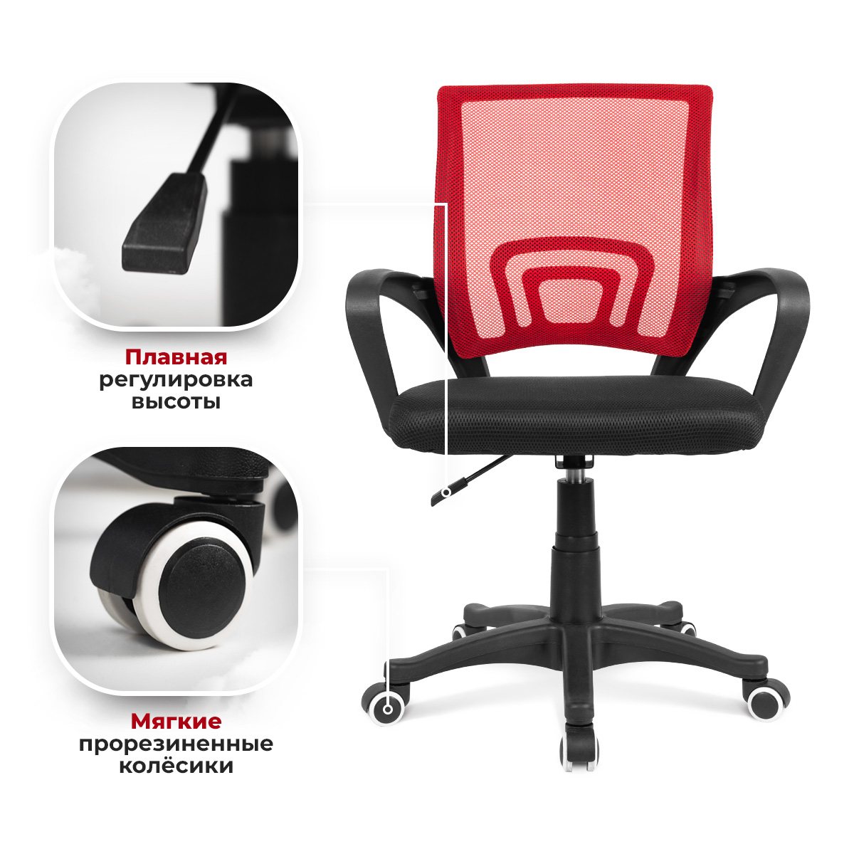Кресло регулируется в диапазоне от 39 до 49 сантиметров при помощи газ-лифта. Прорезиненные колёсики дают возможность катать кресло по полу без шума и царапин.